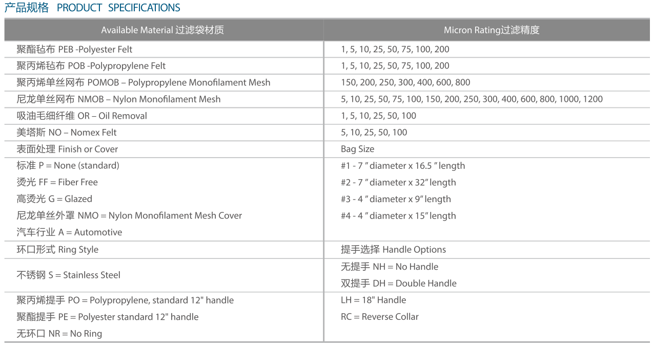 產品編號 過濾袋